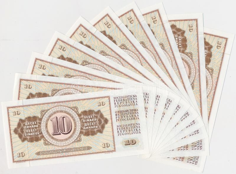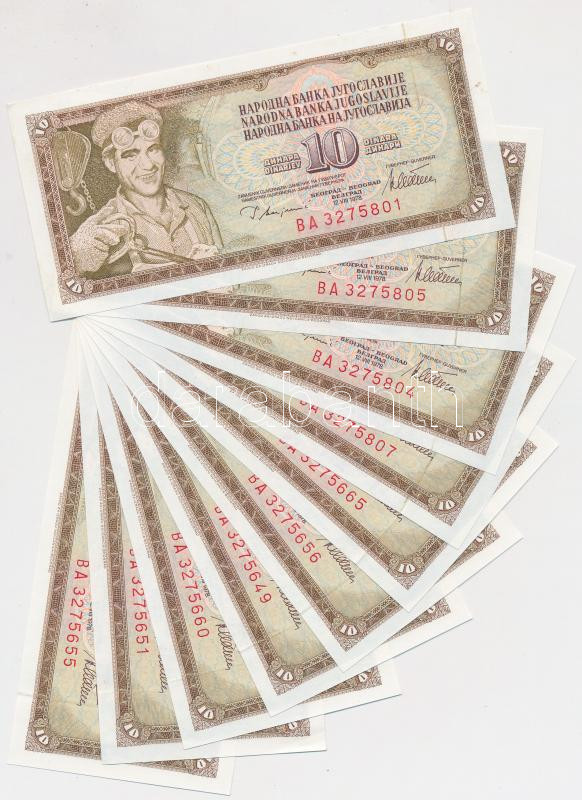 Yugoslavia 1978. 10 Dinara (10x) with two sequential serials, the others have close serials C:UNC,AU