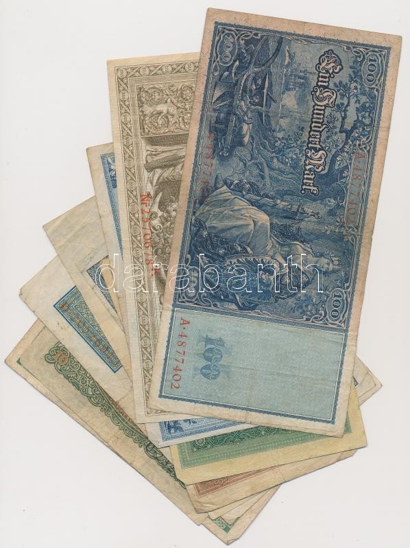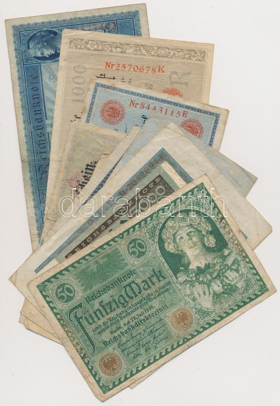 Német Birodalom 1908-1915. 2M-1000M (7xklf) bankjegy + Weimari Köztársaság 1920-1922. 10M-5000M (5xklf) bankjegy T:vegyes