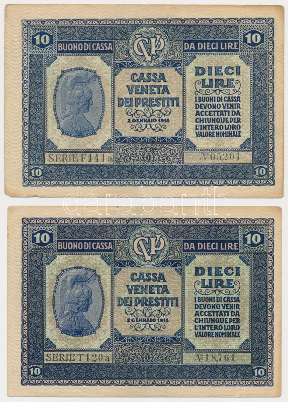 Italy/Venice/Austrian-Hungarian occupation 1918. 10 Lire (2x) C:VF