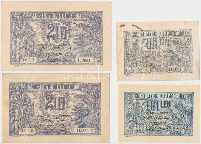 Romania 1920. 1 Leu (2x) + 2 Lei (2x) C:VF,F