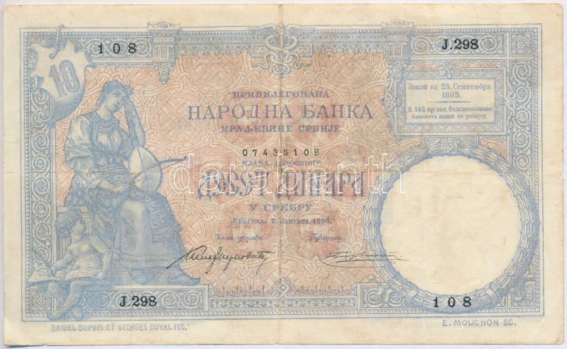 Szerb Királyság 1893. 10D T:III