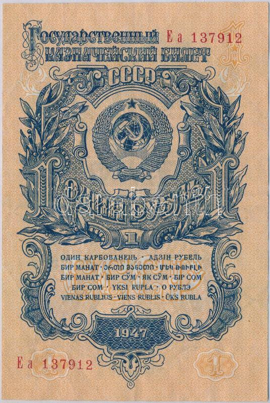 Soviet Union 1947. 1 Ruble C:F https://www.darabanth.com/de/236-Fernauktion/236.0/Numismatik/Weltweit-Banknoten~200011/Szovjetunio-1947-1R-TIII-3Cbr3ESoviet-Union-1947-1-Ruble-CF~II1081419