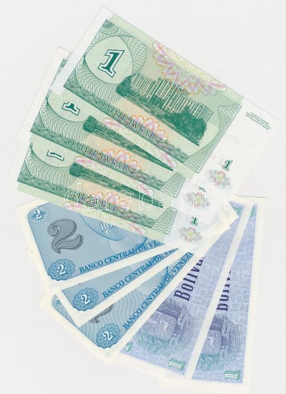 Mixed: Venezuela 1989. 1 Bolivar (2x) sequential serials + 2 Bolivares (3x) sequential serials + Transnistria 1994. 1 Ruble (3x) including two sequential serials C:UNC