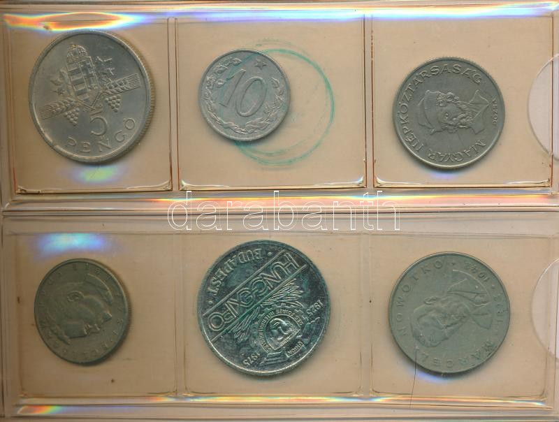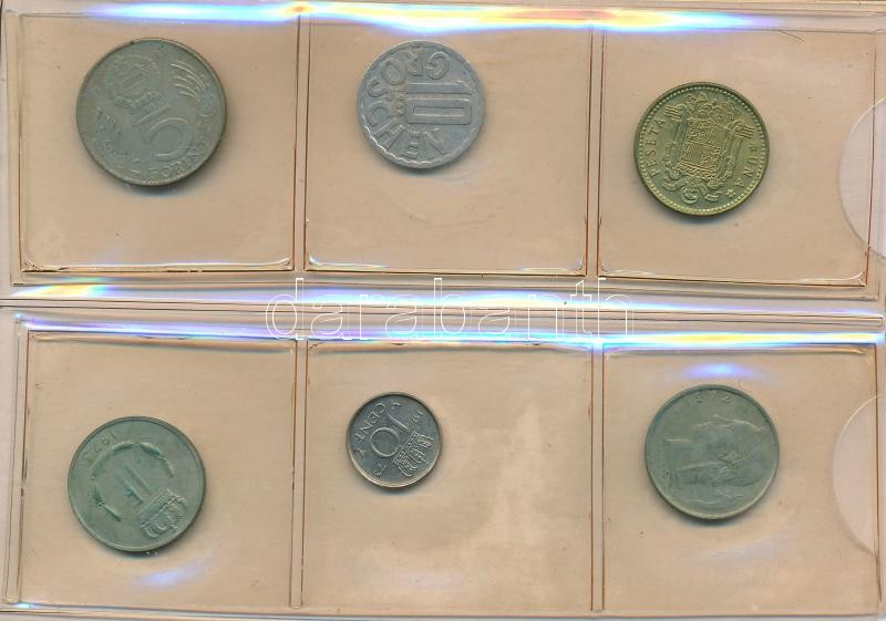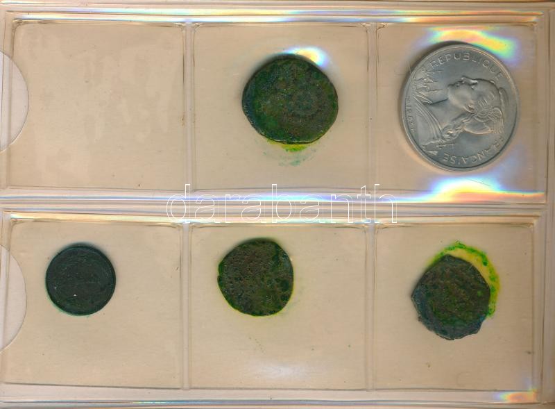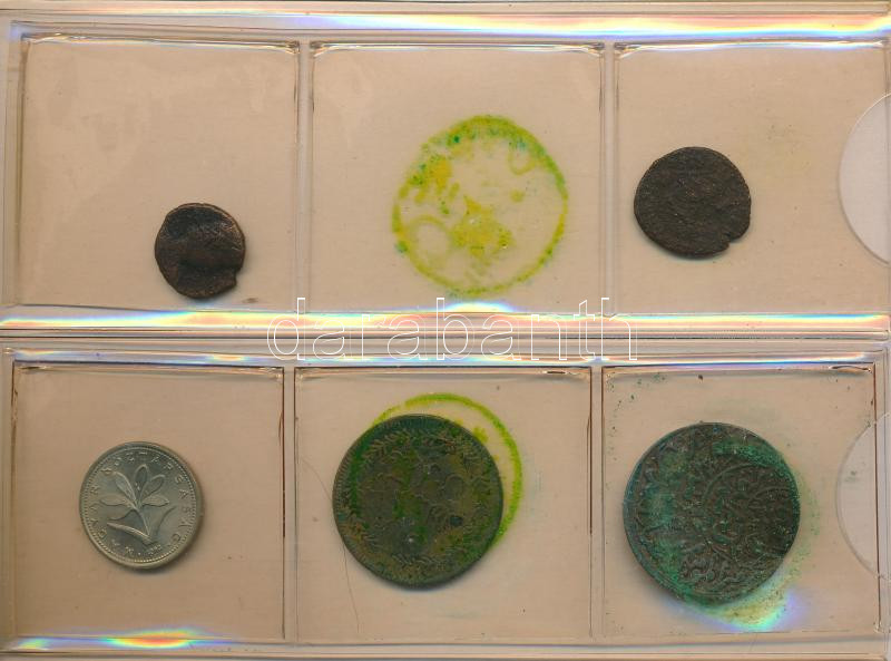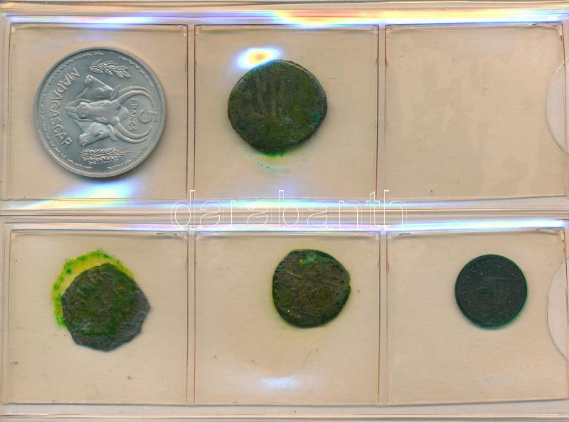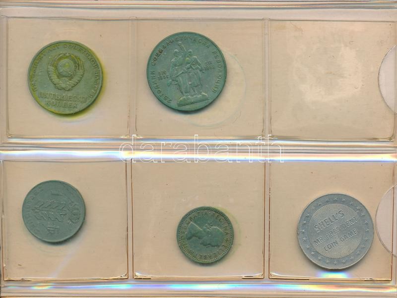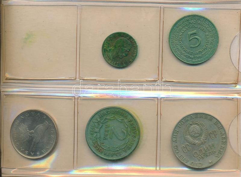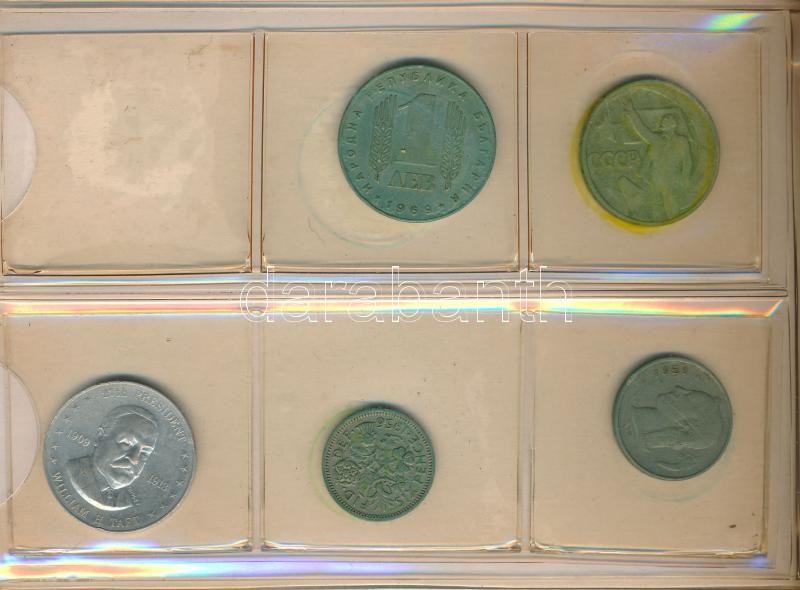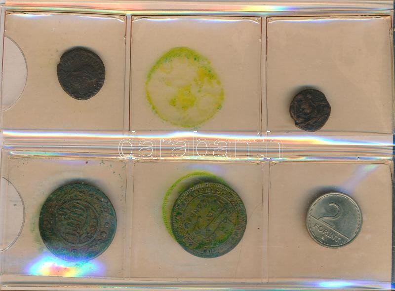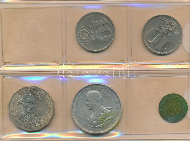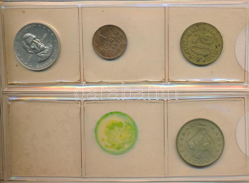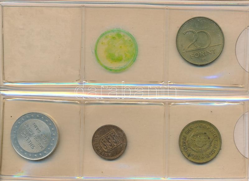 44db vegyes magyar és külföldi fémpénz és zseton kis albumban, közte érdekesebb darabok is! T:vegyes