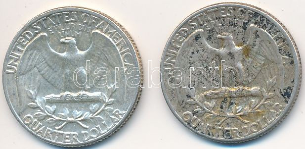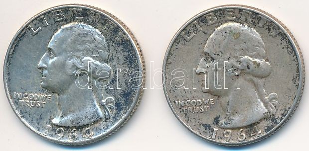 Beschreibung: Amerikai Egyesült Államok 1964. 1/4$ Ag "Washington Quarter" (2x) T:3