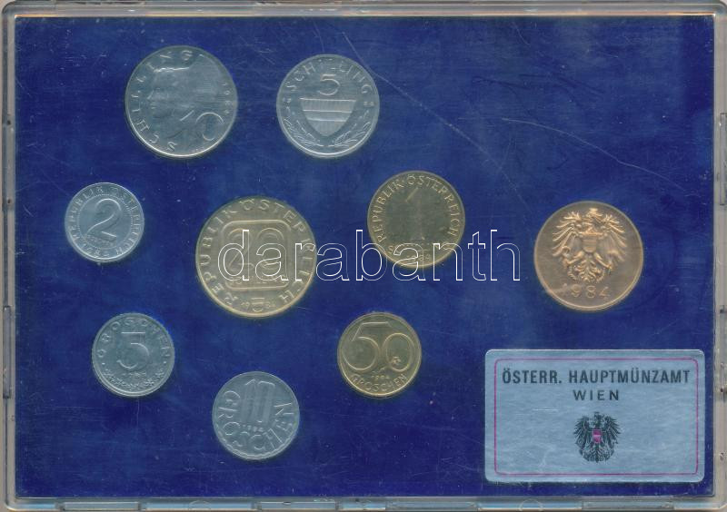 Ausztria 1984. 2gr-20Sch 8xklf db-os forgalmi szett + Bécsi Verde zseton műanyag tokban T:PP