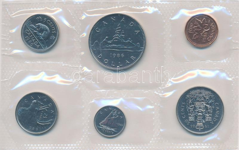 Canada 1986. 1 Cent - 1 Dollar (6xdiff) set in foil packing C:UNC