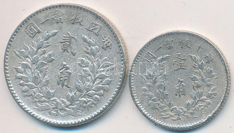 Kína 1914. 10c Ag + 20c Ag "Yüan Shihkai" T:2-,3