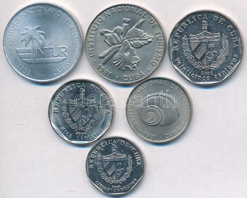 Cuba / Visitor's coinage 1981-1988. 5 Centavos Cu-Ni + 25 Centavos (2xdiff) Cu-Ni/Al + 2002-2008. 5 Centavos + 10 Centavos + 25 Centavos C:XF,VF