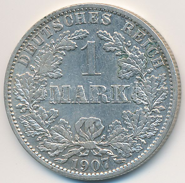 German Empire 1907A 1 Mark C:XF https://www.darabanth.com/de/236-Fernauktion/236.0/Numismatik/Weltweit-Munzen~200012/Nemet-Birodalom-1907A-1M-Ag-T2-3Cbr3EGerman-Empire-1907A-1-Mark-CXF~II1088756