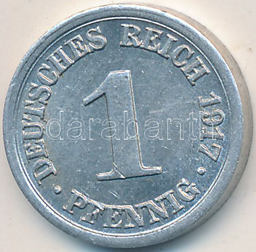 German Empire 1917D 1 Pfennig Al C:XF https://www.darabanth.com/de/236-Fernauktion/236.0/Numismatik/Weltweit-Munzen~200012/Nemet-Birodalom-1917D-1Pf-Al-T2-3Cbr3EGerman-Empire-1917D-1-Pfennig-Al-CXF~II1081094