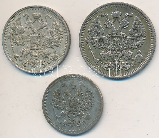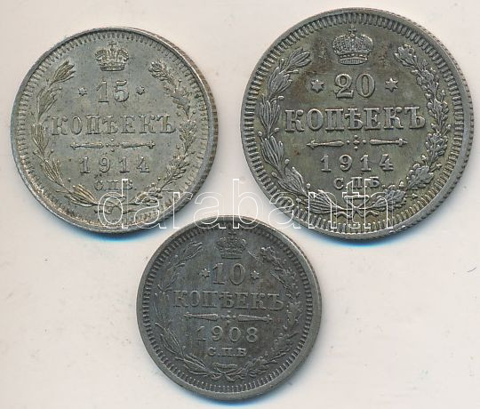 Beschreibung: Orosz Birodalom 1908-1914. 10k Ag + 15k Ag + 20k Ag T:2,2-