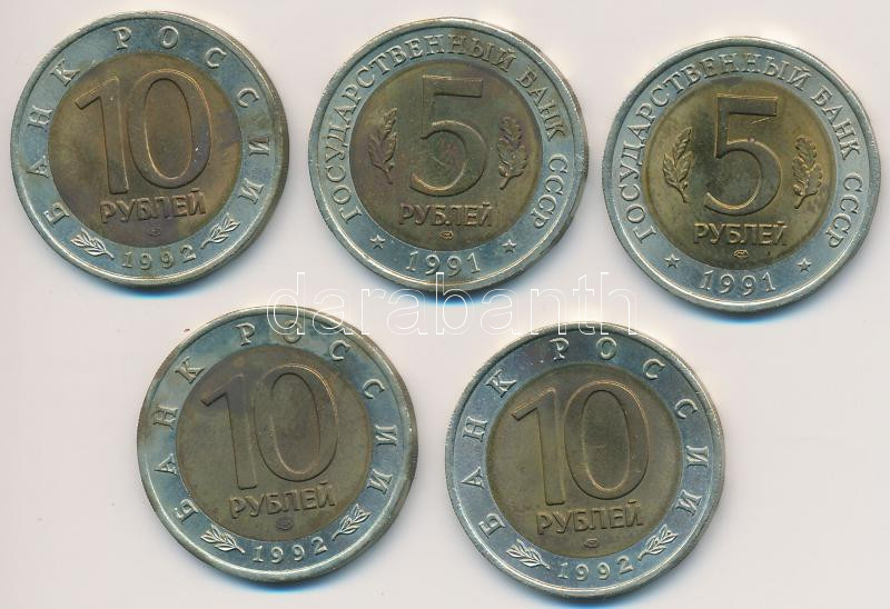 Oroszország 1991. 5R "Vadvilág" (2xklf) + 1992. 10R "Vadvilág" (3xklf)... https://www.darabanth.com/de/236-Fernauktion/236.0/Numismatik/Weltweit-Munzen~200012/Oroszorszag-1991-5R-Vadvilag-2xklf-plus-1992-10R-Vadvilag-3xklf-T2-3Cbr3ERussia-1991-5-Ru~II1087529
