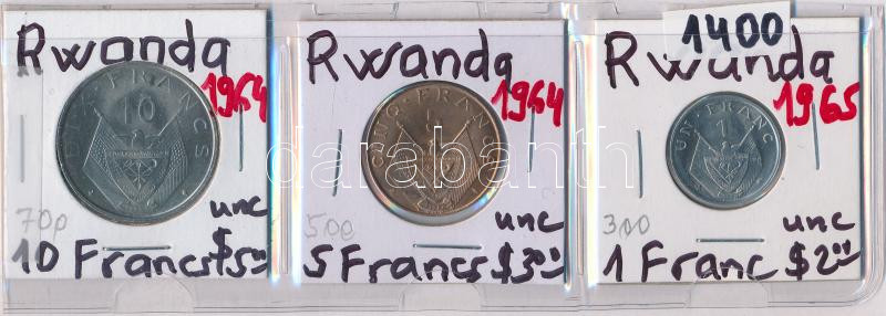 Rwanda 1964. 5 Francs + 10 Francs + 1965. 1 Franc C:UNC,AU