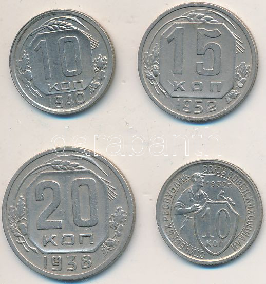 Soviet Union 193... https://www.darabanth.com/de/236-Fernauktion/236.0/Numismatik/Weltweit-Munzen~200012/Szovjetunio-1932-1952-10k-2xklf-plus-15k-plus-20k-T2-2--3Cbr3ESoviet-Union-1932-1952-10-Kopek-2xdiff~II1081080
