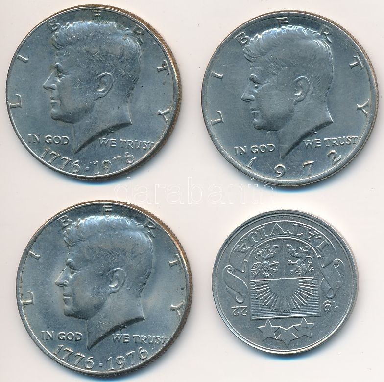Beschreibung: Vegyes: Amerikai Egyesült Államok 1972. 1/2$ Cu-Ni "Kennedy" + 1976. 1/2$ Cu-Ni "Kennedy" (2x) + Lettország 1922. 50s Ni T:2,2-