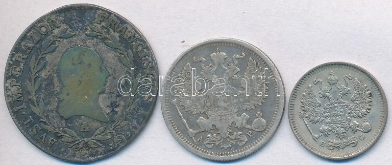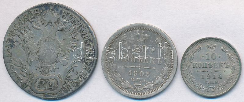 Vegyes: Ausztira 1808A 20kr Ag "I. Ferenc" + Orosz Birodalom 1905. 20k Ag + 1914. 10k Ag T:2-,3,3-