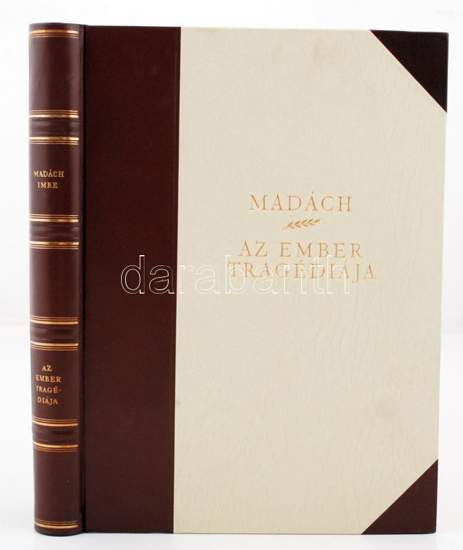 Madách Imre: Az ember tragédiája. Zichy Mihály rajzaival. Sorszámozott bibliofil kiadás a mű bemutatójának 75. évfordulójára. (Bp.) 1958. Magyar Helikon. 222 l. 1 sztl. lev. 20 t. Aranyozott kiadói félbőr-kötésben. Tékában, hibátlan állapotban