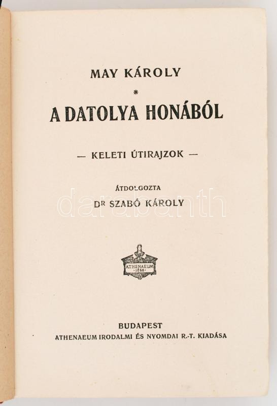 May Károly: A datolya honából. Budapest 1911. Athenaeum. Kilazult egés... https://www.darabanth.com/de/237-Fernauktion/237.0/Andere-Sammelgebiete/Bucher-Sonstige-Raritaten~200043/May-Karoly-A-datolya-honabol-Budapest-1911-Athenaeum-Kilazult-egeszvaszon-kotesben-~II1096922