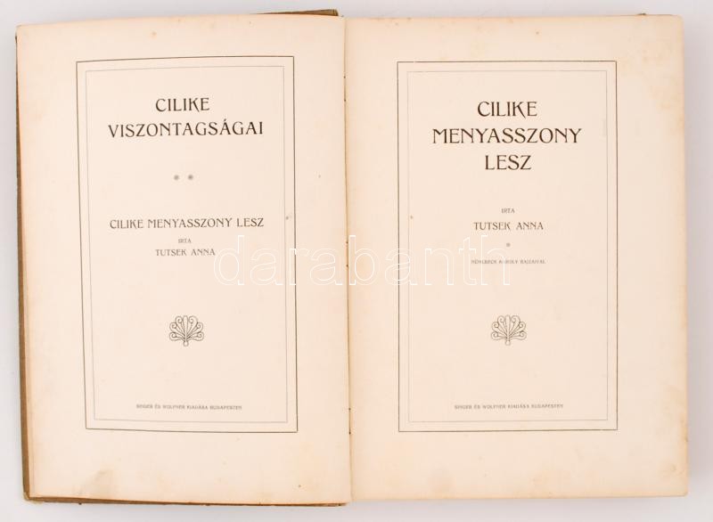Tutsek Anna: Cilike menyasszony lesz. Mühlbeck Károly rajzaival. Budapest, Singer és Wolfner. Illusztrált, kiadói, egészvászon kötésben néhány ceruzás bejegyzéssel