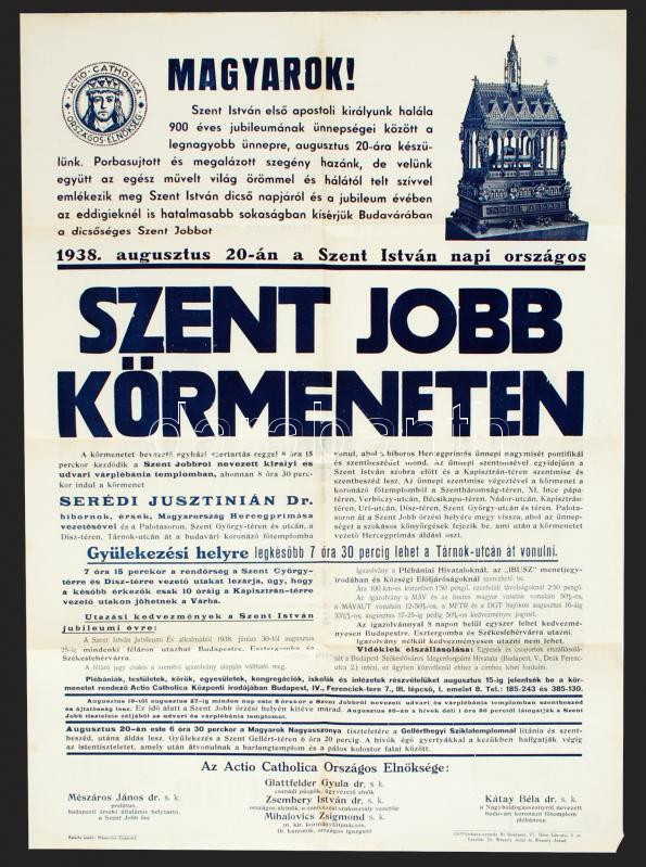 1938 Bp., Nagyméretű felhívás a Szent Jobb körmenetre, 70x50 cm https://www.darabanth.com/de/237-Fernauktion/237.0/Andere-Sammelgebiete/Drucksachen~200037/1938-Bp-Nagymeretu-felhivas-a-Szent-Jobb-kormenetre-70x50-cm~II1095661