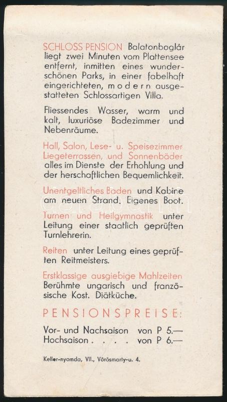 cca 1930-1940 A balatonboglári Kastély Pensio reklámprospektusa https://www.darabanth.com/de/237-Fernauktion/237.0/Andere-Sammelgebiete/Drucksachen~200037/cca-1930-1940-A-balatonboglari-Kastely-Pensio-reklamprospektusa~II1091323