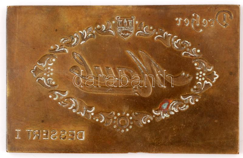 Beschreibung: Dreher Maul Dessert nyomdai klisé, bronz, 8,5x13cm