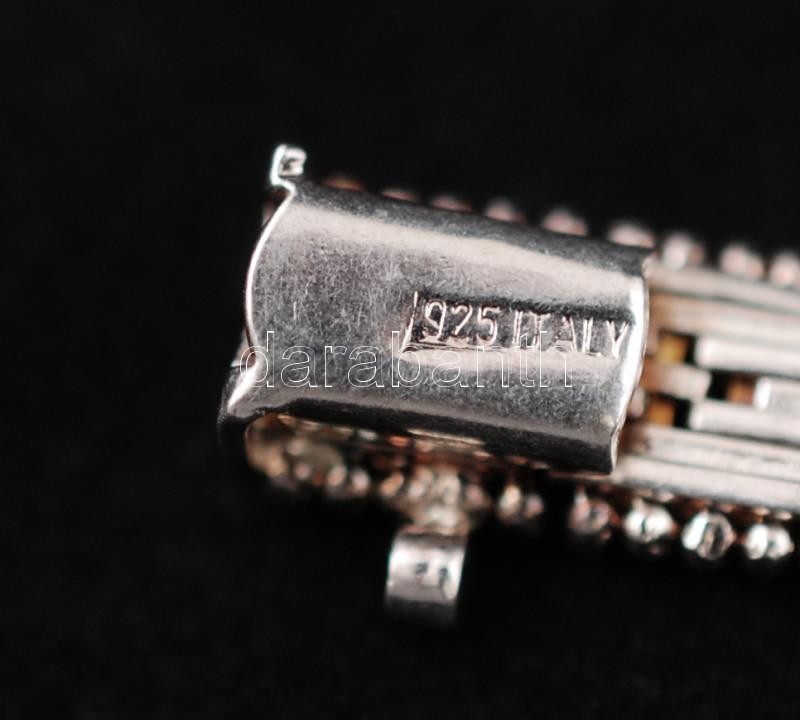 Beschreibung: Ezüst(Ag) karkötő gyöngykör szegélydíszítítéssel, jelzett, biztonsági kapoccsal, h: 20 cm, 16,2 g /