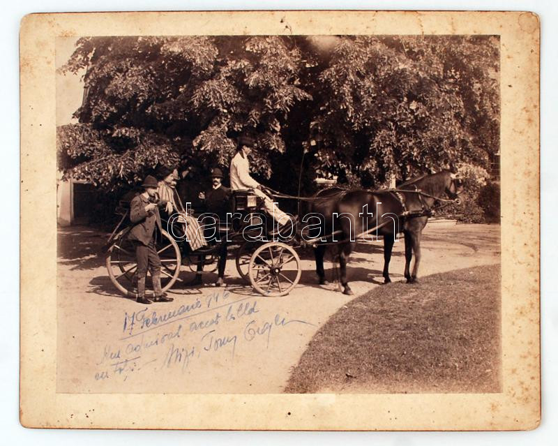 1891 Zaguzsén, Románia, A kocsi indulásra kész, keményhátú fotó, 25x20 cm, karton 29x23 cm /