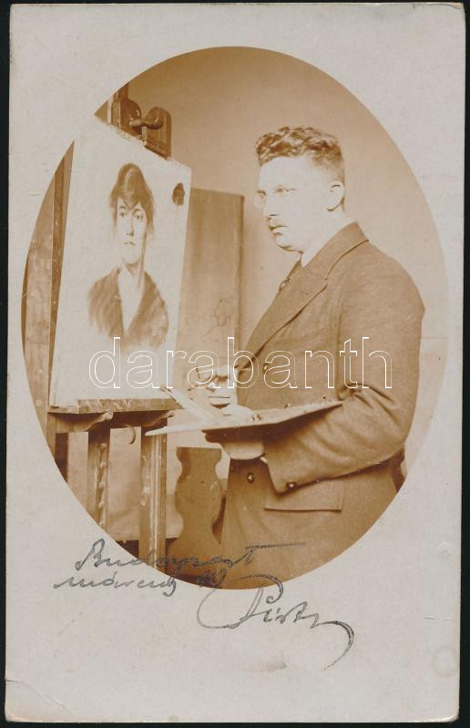 cca 1910 Festő munka közben fotólap https://www.darabanth.com/de/237-Fernauktion/237.0/Andere-Sammelgebiete/Foto~200024/cca-1910-Festo-munka-kozben-fotolap~II1098236