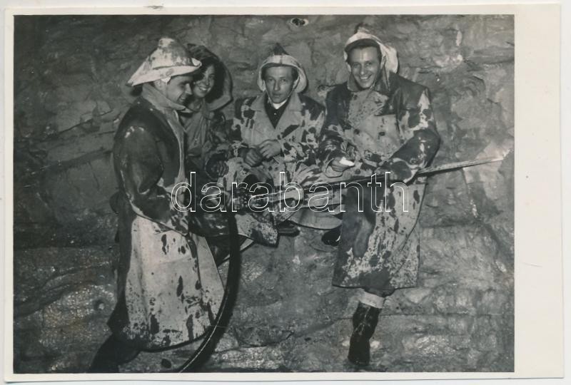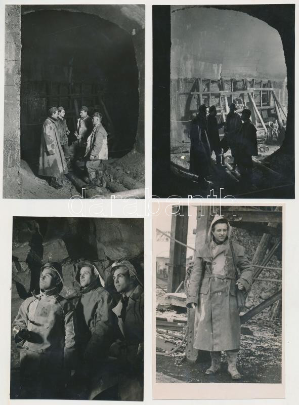 cca 1950 Mező Sándor képriportja a budapesti metróépítés őskorszakából, amikor még kézi erővel termelték ki az alagútban levő földet, követ, sziklát, 5 db fotó a munkásokról, 12x9 cm