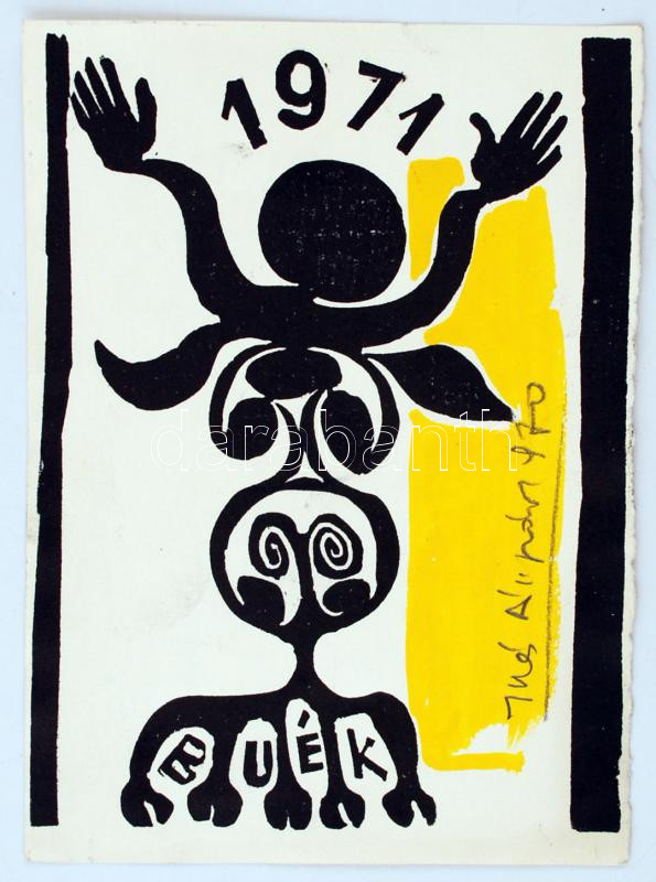 Illés Árpád (1908-1980): BUÉK 1970. linómetszet, tojástempera. szignál... https://www.darabanth.com/de/237-Fernauktion/237.0/Andere-Sammelgebiete/Gemalde-und-Grafiken~800478/Illes-Arpad-1908-1980-BUEK-1970-linometszet-tojastempera-szignalt-18x12-cm~II1094388