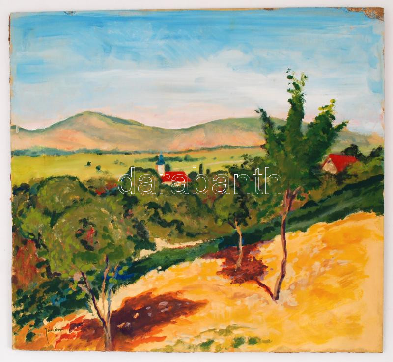 Jámbor jelzéssel: Dombos táj templommal, olaj, farost, 44×48 cm https://www.darabanth.com/de/237-Fernauktion/237.0/Andere-Sammelgebiete/Gemalde-und-Grafiken~800478/Jambor-jelzessel-Dombos-taj-templommal-olaj-farost-44C39748-cm~II1089666