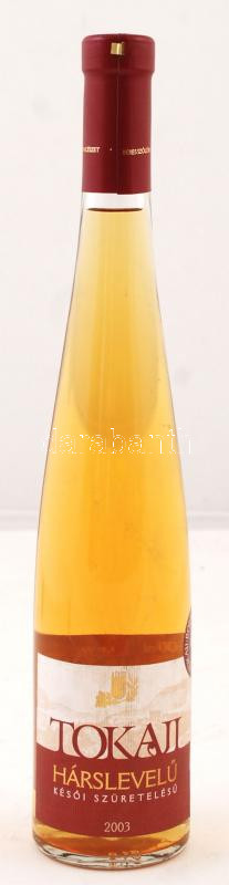 2003 Késői szüretelésű tokaji hárslevelű. Éres szólobirtók. Minőségi b... https://www.darabanth.com/de/237-Fernauktion/237.0/Andere-Sammelgebiete/Vintage-Weine~200013/2003-Kesoi-szuretelesu-tokaji-harslevelu-Eres-szolobirtok-Minosegi-bor-bontatlan-pala~II1071763