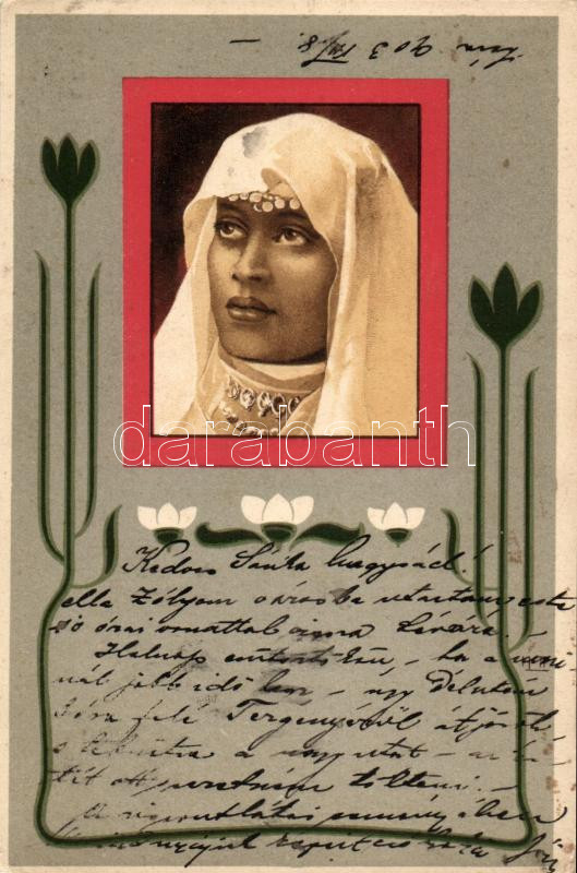Arabian folklore, woman, Art Nouveau litho (EK) https://www.darabanth.com/de/237-Fernauktion/237.0/Ansichtskarten/Folklore~800477/Arabian-folklore-woman-Art-Nouveau-litho-EK~II1089207