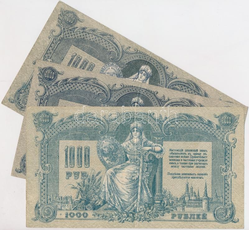 Orosz Birodalom / Dél-Oroszország / Gyenyikin és Vrangel Hadserege 1919. 1000R (3x) T:III