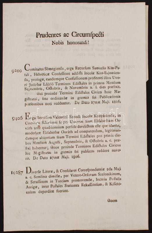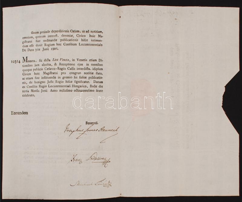 1806 Helytartótanácsi leirat, latin nyelven, tisztviselők aláírásaival https://www.darabanth.com/de/238-Fernauktion/238.0/Andere-Sammelgebiete/Dokument~600043/1806-Helytartotanacsi-leirat-latin-nyelven-tisztviselok-alairasaival~II1047396