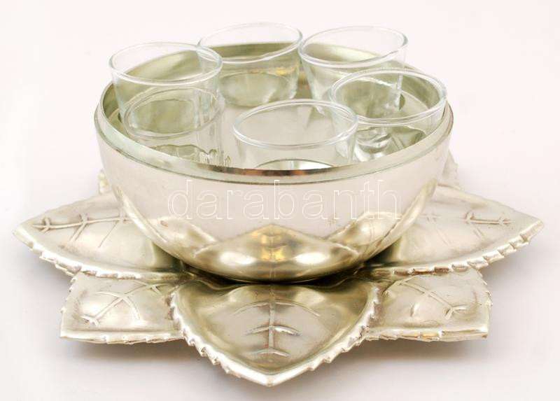 Beschreibung: Almát formázó alumínium pohártartó, alumínium talppal, benne 6 db felespohárral