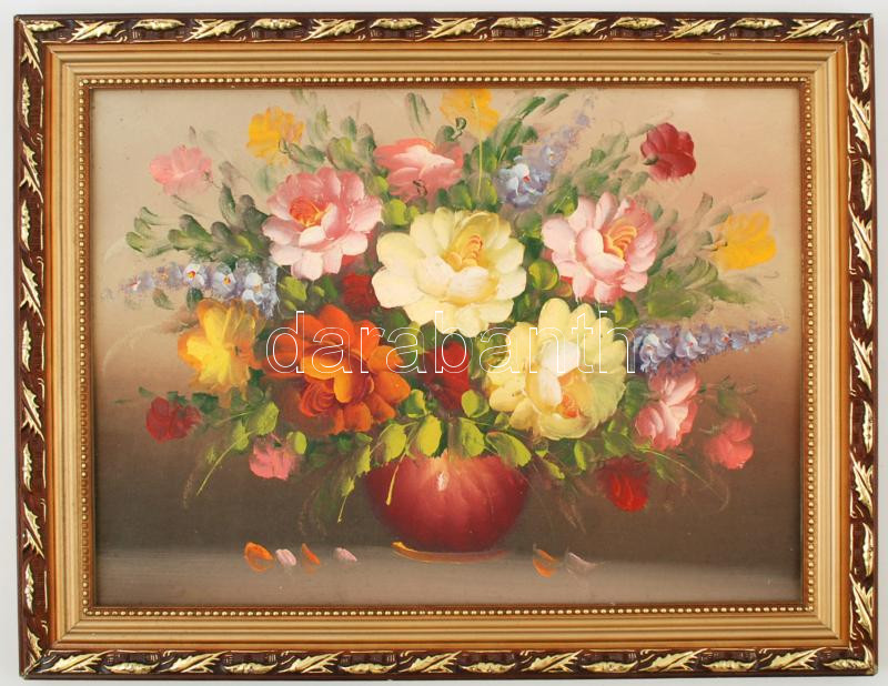 Jelzés nélkül: Virág csendélet, olaj, vászon, díszes fa keretben, 28,5... https://www.darabanth.com/de/238-Fernauktion/238.0/Andere-Sammelgebiete/Gemalde-und-Grafiken~600008/Jelzes-nelkul-Virag-csendelet-olaj-vaszon-diszes-fa-keretben-28-5C39738-5-cm~II1099308