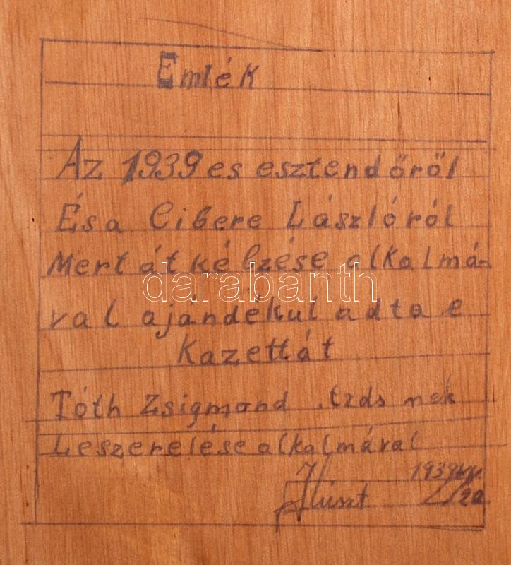 1939 leszerelési emlék doboz, faragott festet fa, "Kőrösmező" emlék fe... https://www.darabanth.com/de/238-Fernauktion/238.0/Andere-Sammelgebiete/Militaria~600002/1939-leszerelesi-emlek-doboz-faragott-festet-fa-Korosmezo-emlek-felirattal--17C39720-cm~II1104897