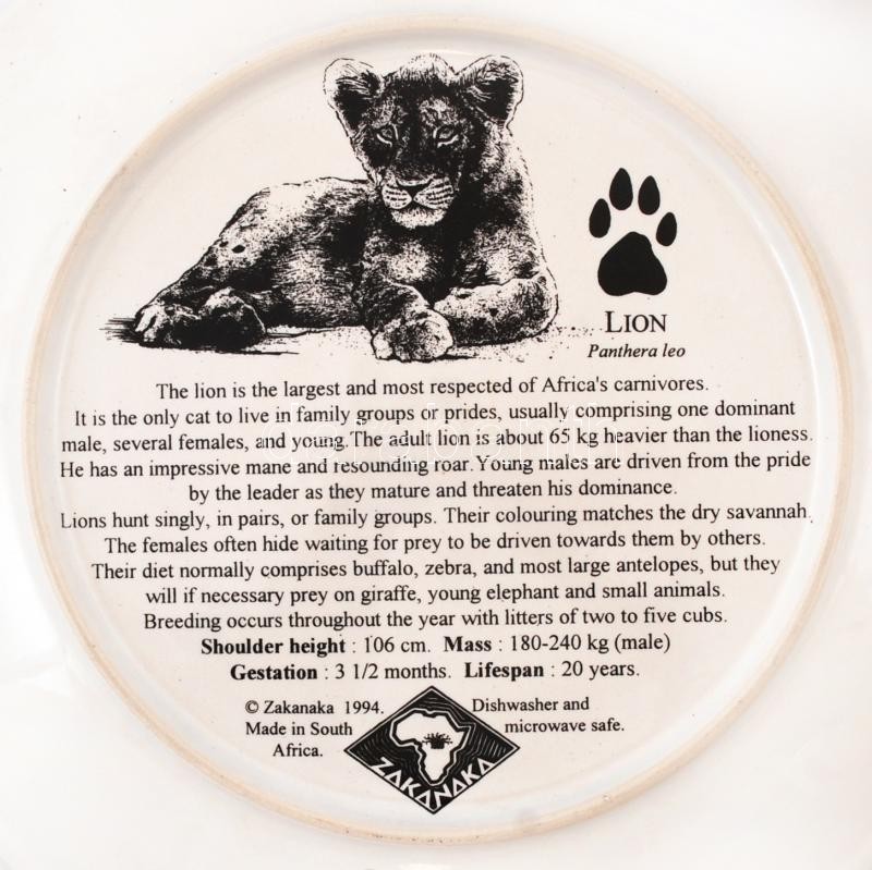 Beschreibung: Zakanaka Oroszlán,Dél-Afrikai porcelán tányér matricás, jelzett, hibátlan, d:25,5cm