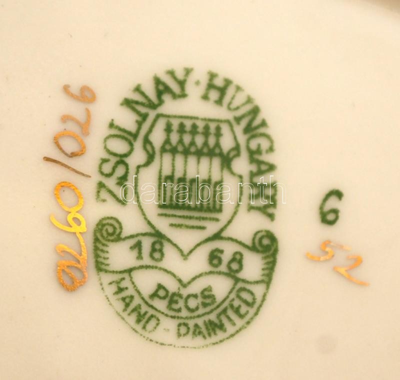 Zsolnay ovális tálka, kézzel festett, jelzett, hibátlan, 11x7cm https://www.darabanth.com/de/238-Fernauktion/238.0/Andere-Sammelgebiete/Porzellan~600016/Zsolnay-ovalis-talka-kezzel-festett-jelzett-hibatlan-11x7cm~II1099949