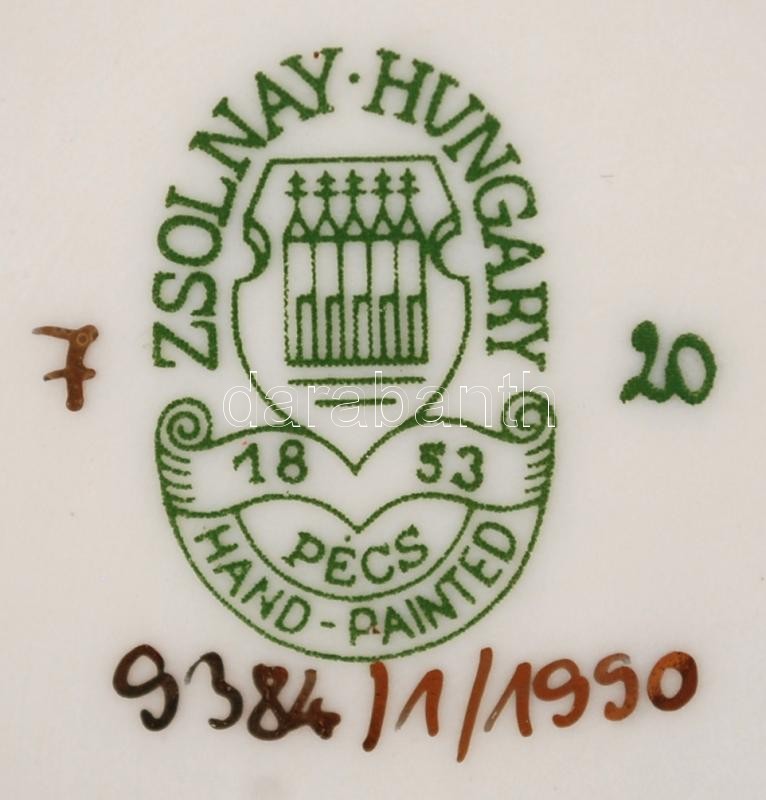 Zsolnay virágmintás porcelán váza, kézzel festett, hibátlan, jelzett, ... https://www.darabanth.com/de/238-Fernauktion/238.0/Andere-Sammelgebiete/Porzellan~600016/Zsolnay-viragmintas-porcelan-vaza-kezzel-festett-hibatlan-jelzett-m-12-cm~II1075722