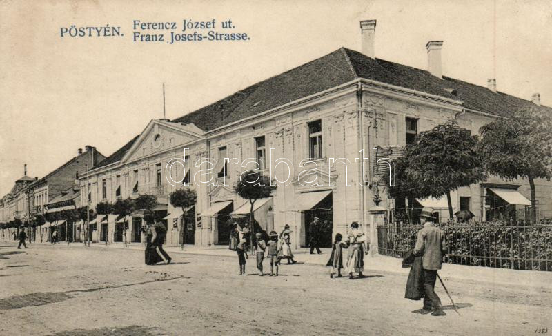 Pöstyén, Ferencz József út / street (r) https://www.darabanth.com/de/238-Fernauktion/238.0/Ansichtskarten/Slowakei~8/Postyen-Ferencz-Jozsef-ut-street-r~II1101141