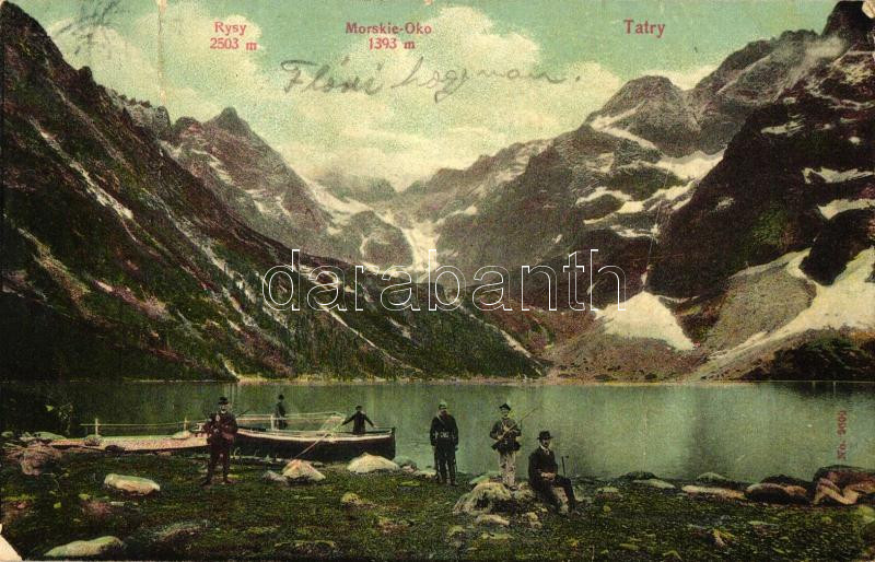 Beschreibung: Tátra, Halas-tó, csónak vadászokkal / lake, boat, hunters (fa)