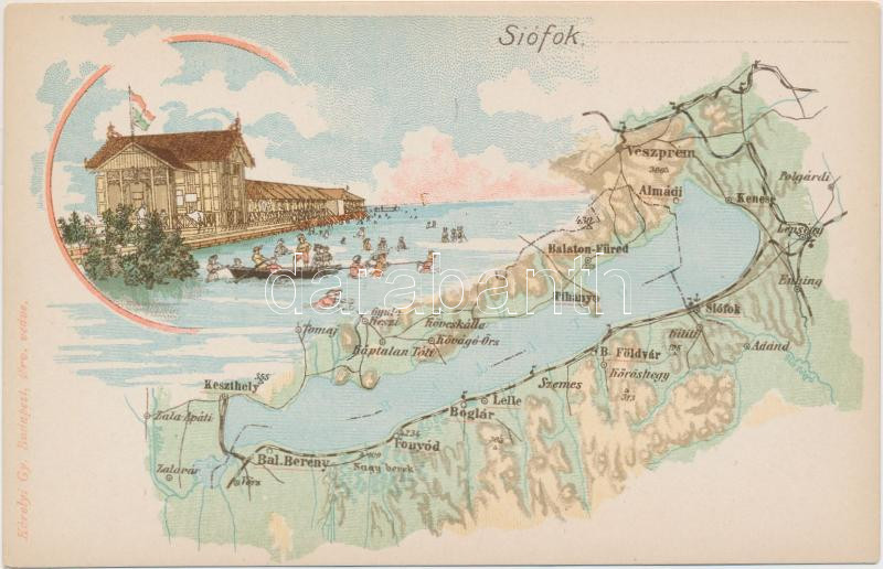 Beschreibung: Siófok, Balaton térkép, litho
