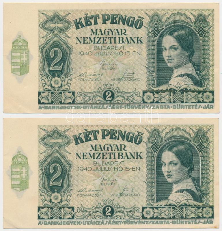 Beschreibung: 1940. 2P (2x) sorszámkövetők T:II-