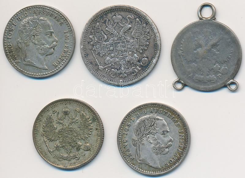 Vegyes: Ausztria 1870-1872. 10kr Ag (2x) + Orosz Birodalom 1875. 15k Ag + 1904. 10k Ag 3 füllel + 1915. 10k Ag T:2,2-,3