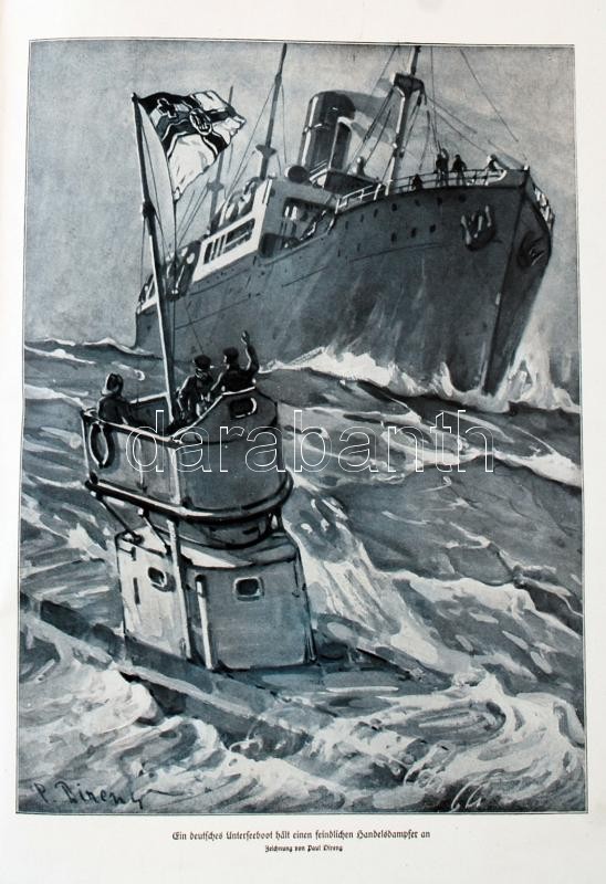 Die große Zeit. Illustrierte Kriegsgecshichte. Band I. Mit zahlreichen Bildern, Karten und Kunstbeilagen. Berlin/Wien, 1915, Verlag Ullstein&Co. Kiadói festett egészvászon kötés, gerincnél kissé szakadt, egyébként jó állapotban / full linen binding, with small fault on the spine, good condition