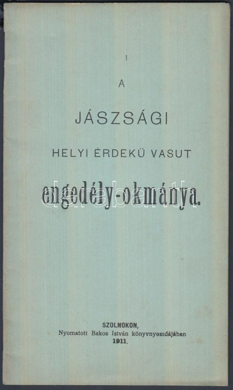 1911. A jászsági helyi érdekű vasút engedély-okmánya. Szolnok, 1911. B... https://www.darabanth.com/de/239-Fernauktion/239.0/Andere-Sammelgebiete/Drucksachen~200026/1911-A-jaszsagi-helyi-erdeku-vasut-engedely-okmanya-Szolnok-1911-Bakos-Istvan-konyvnyom~II1097165